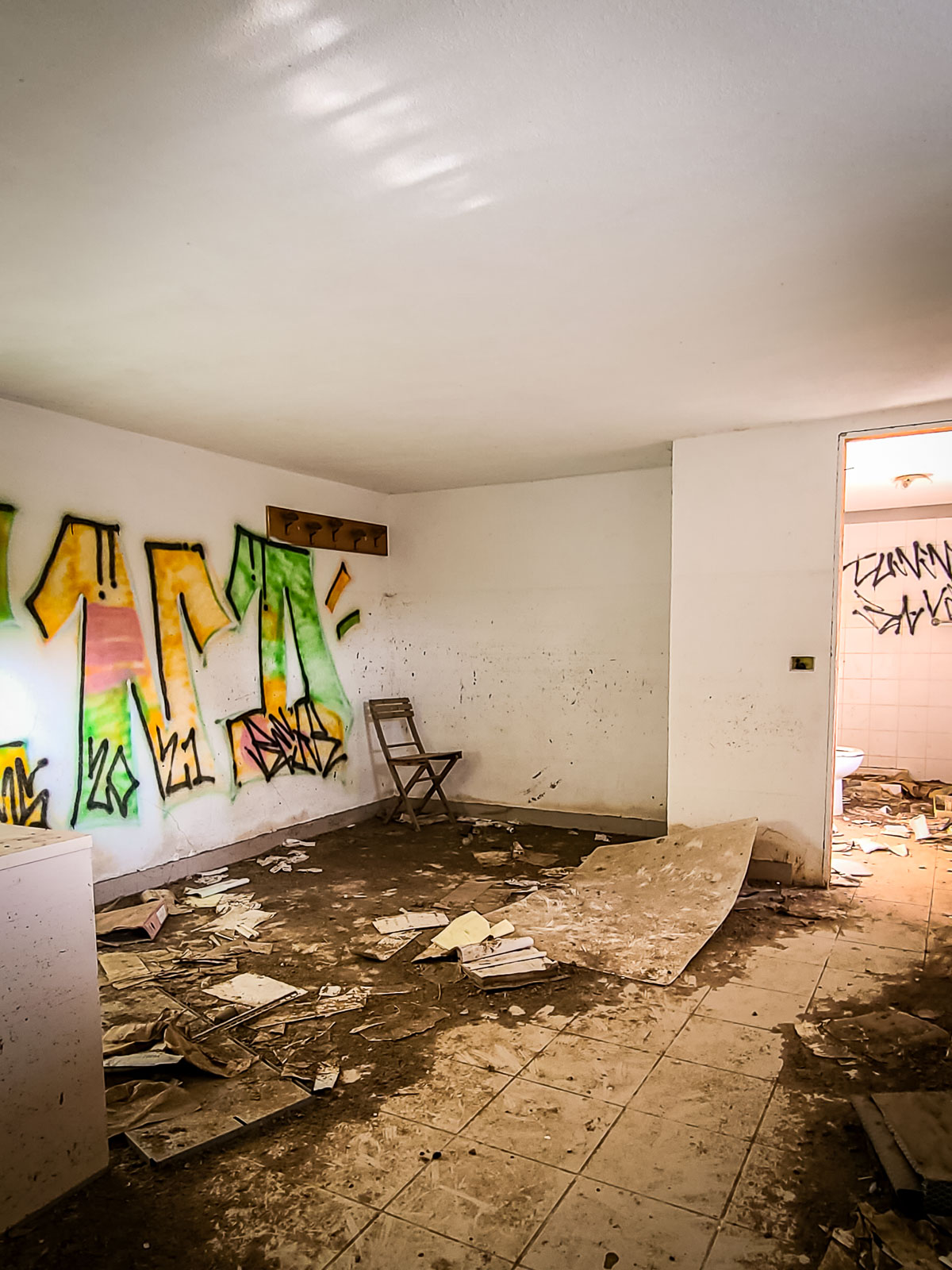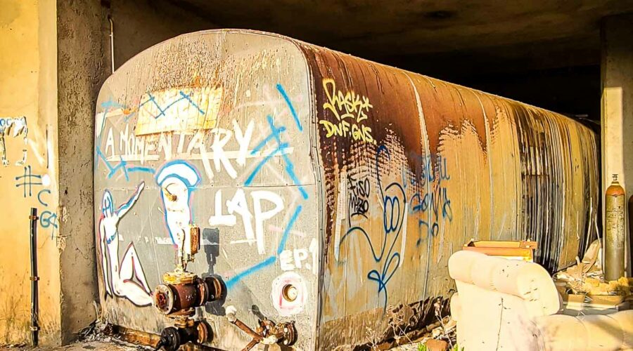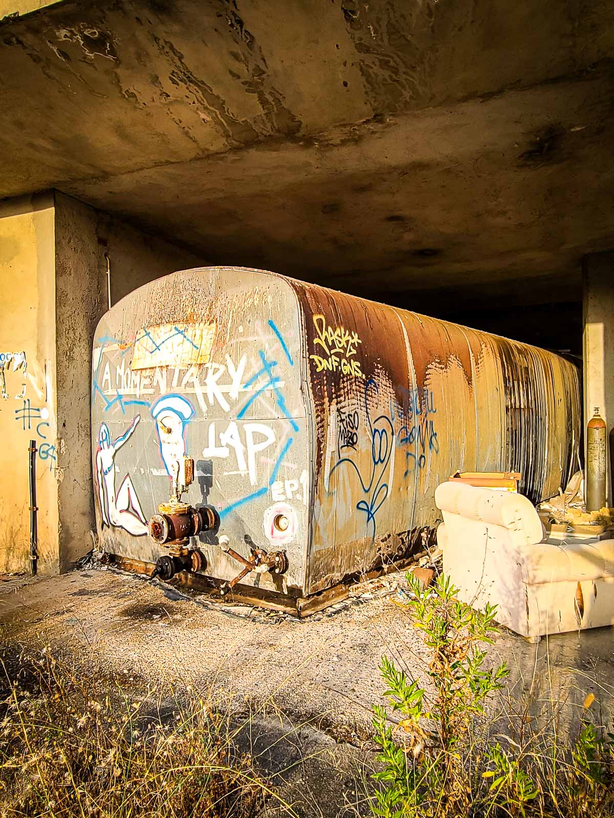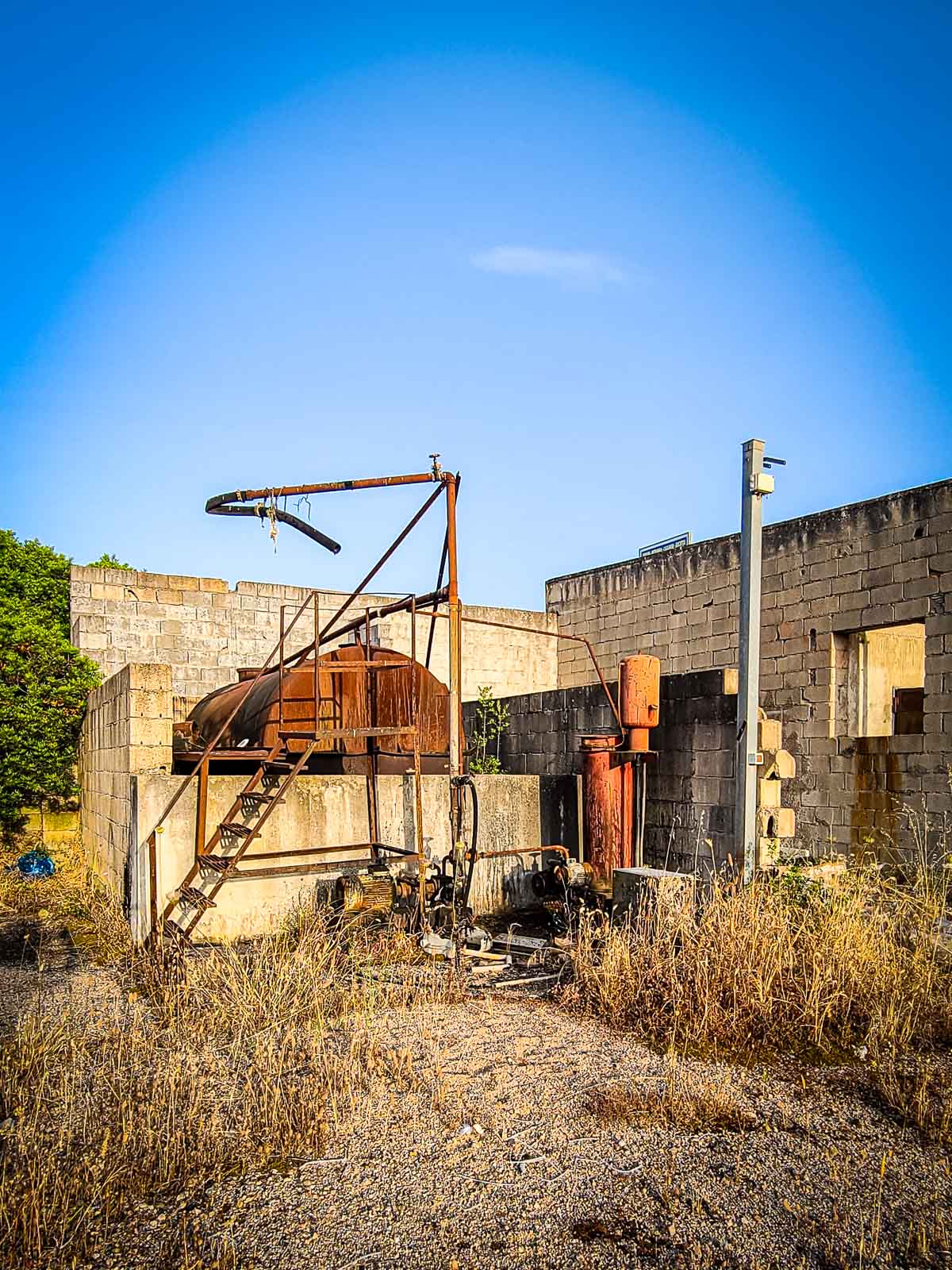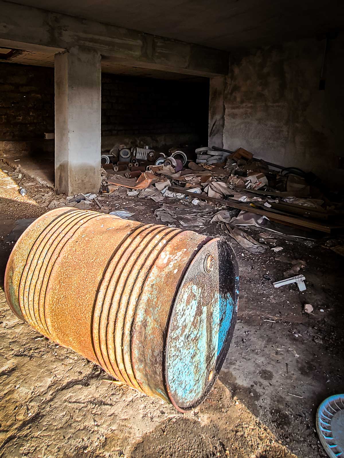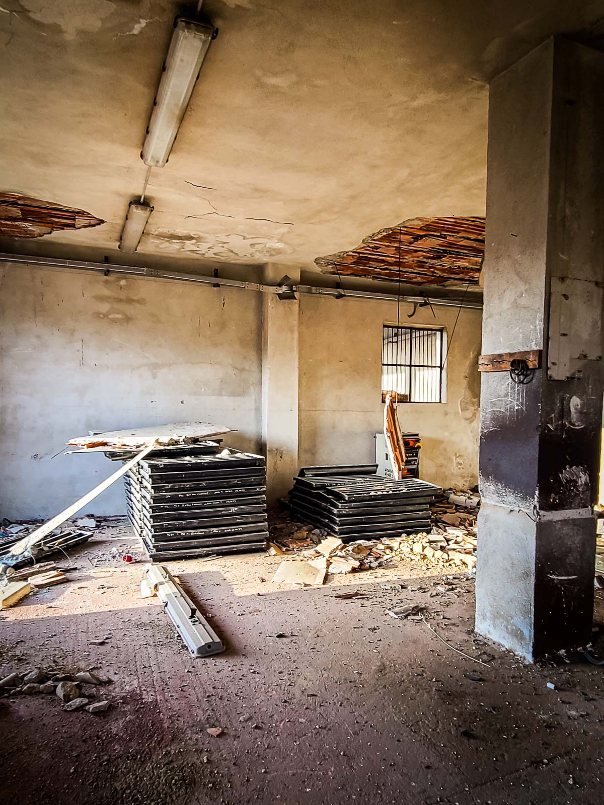 Ici, pour de vrai, un garage vraiment pas rassurant… Je suis seule au beau milieu des routes Sardes et me voilà à explorer cet espace où je vais trouver, je dois m’y résoudre, un canapé marqué de taches de sang. Pas de taches animales de toute évidence, ni de peinture. J’ignore ce qui s’est passé jadis ici… Mais le climat n’est pas bien sécurisant…