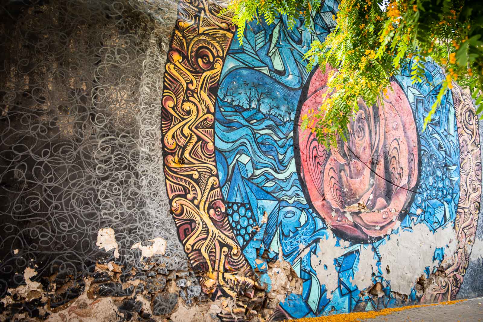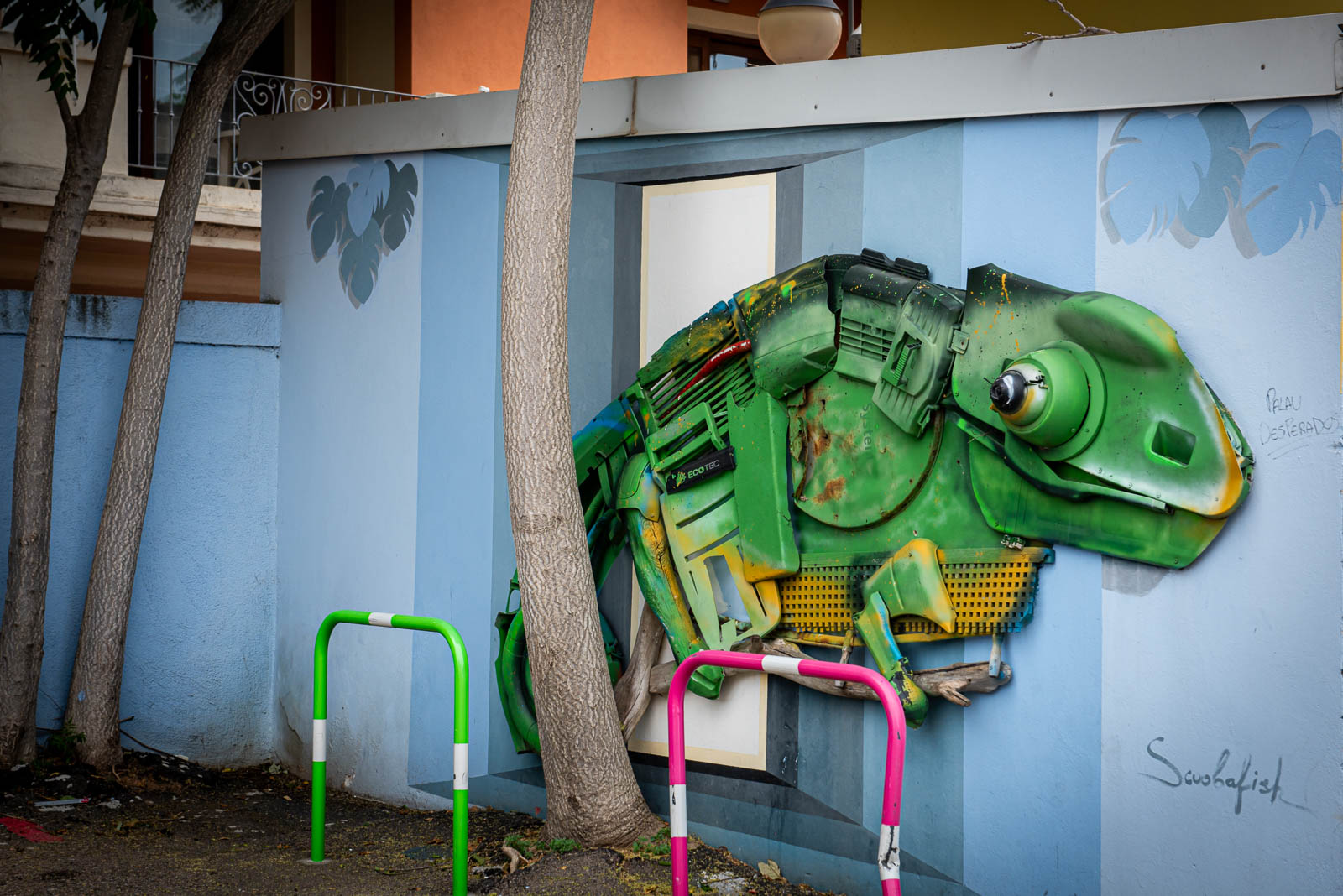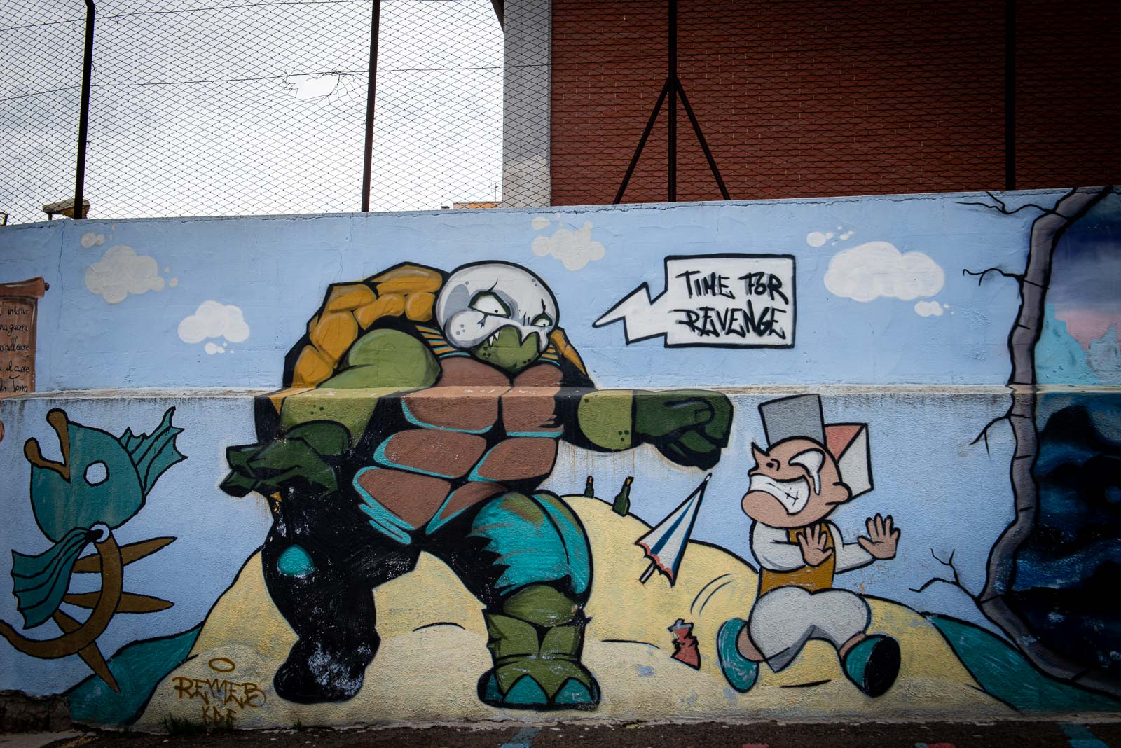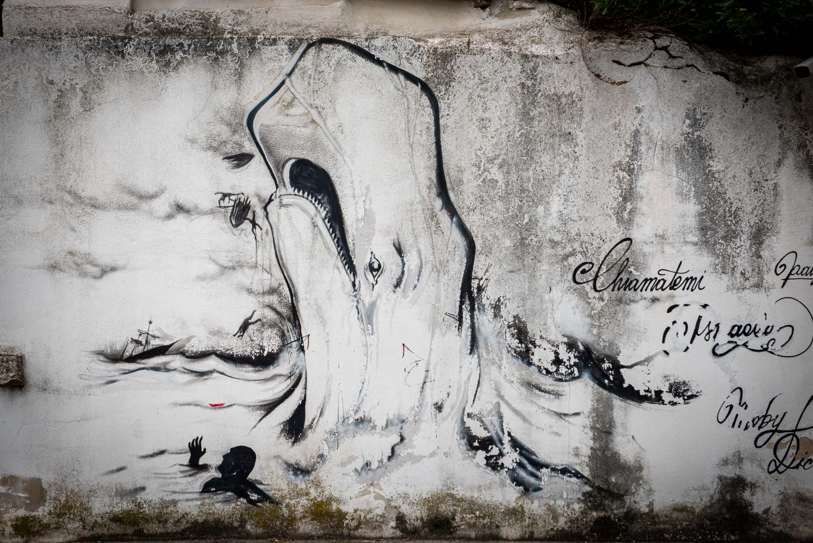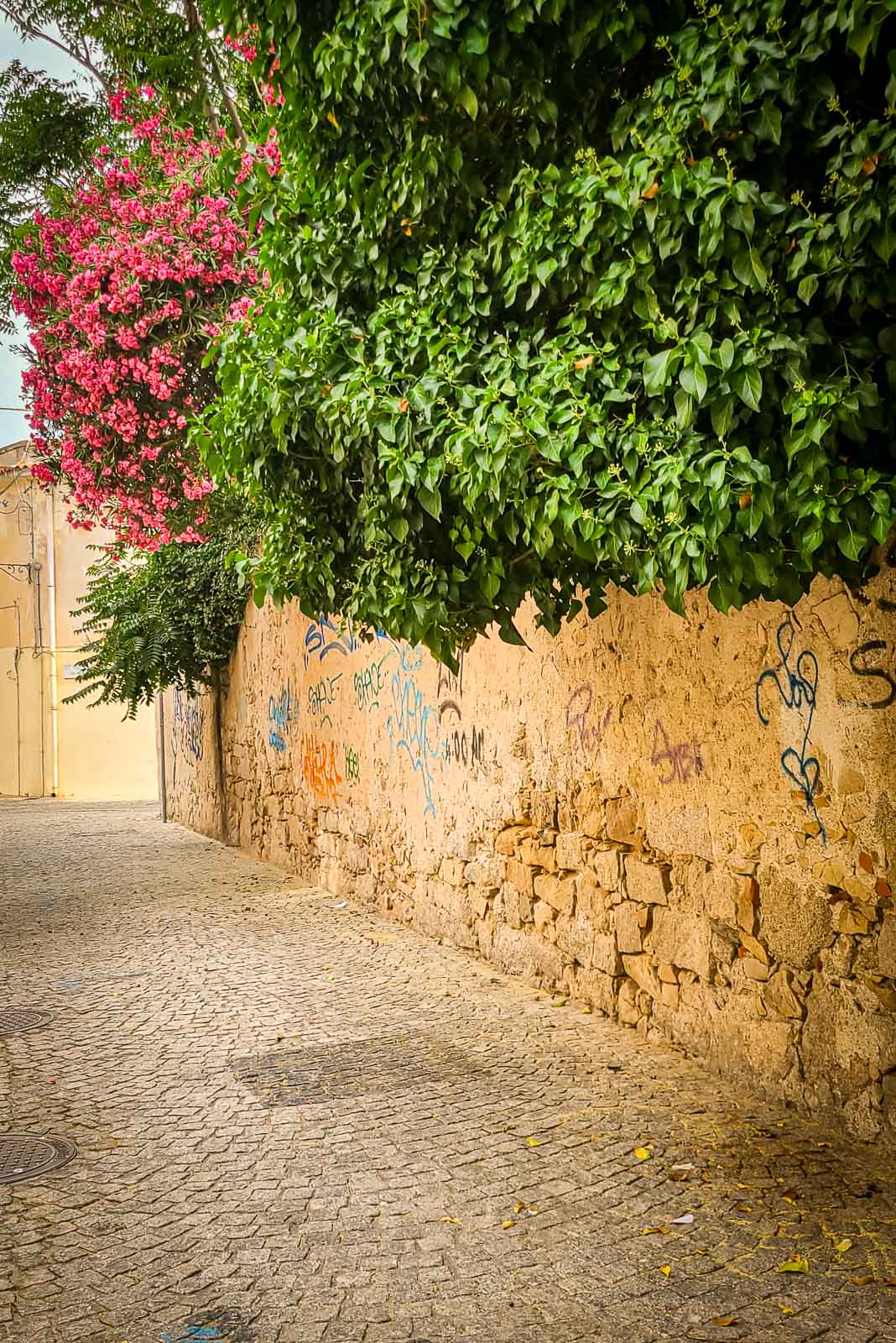 En route pour le sud de l’île de la Sardaigne, je ne peux m’empêcher de faire une halte à Olbia sachant très bien ce que je viens y chercher : cet espace de graffiti tout à fait singulier qui parle de la mer essentiellement. Pour la 3eme année consécutive, je vois le temps caresser les pigments et décharner peu a à peu les peintures originales. Et si chaque année je pouvais refaire cette même photo, devant la fresque des ânes ?…