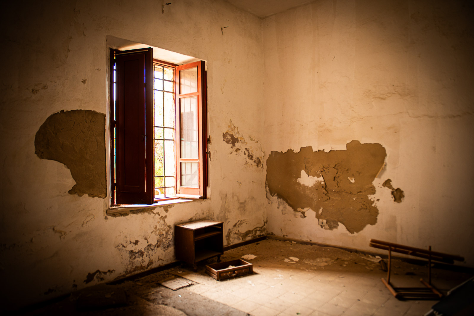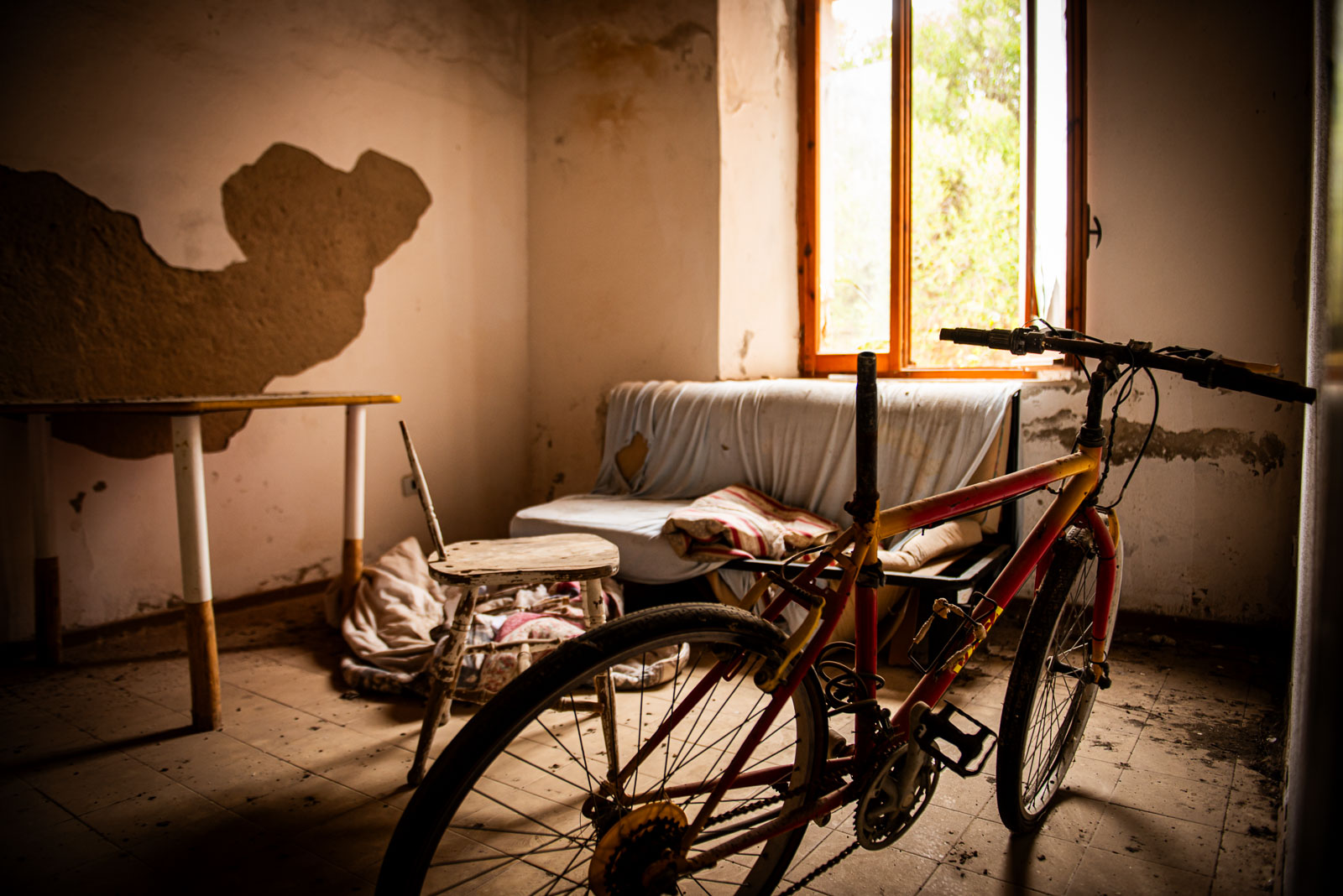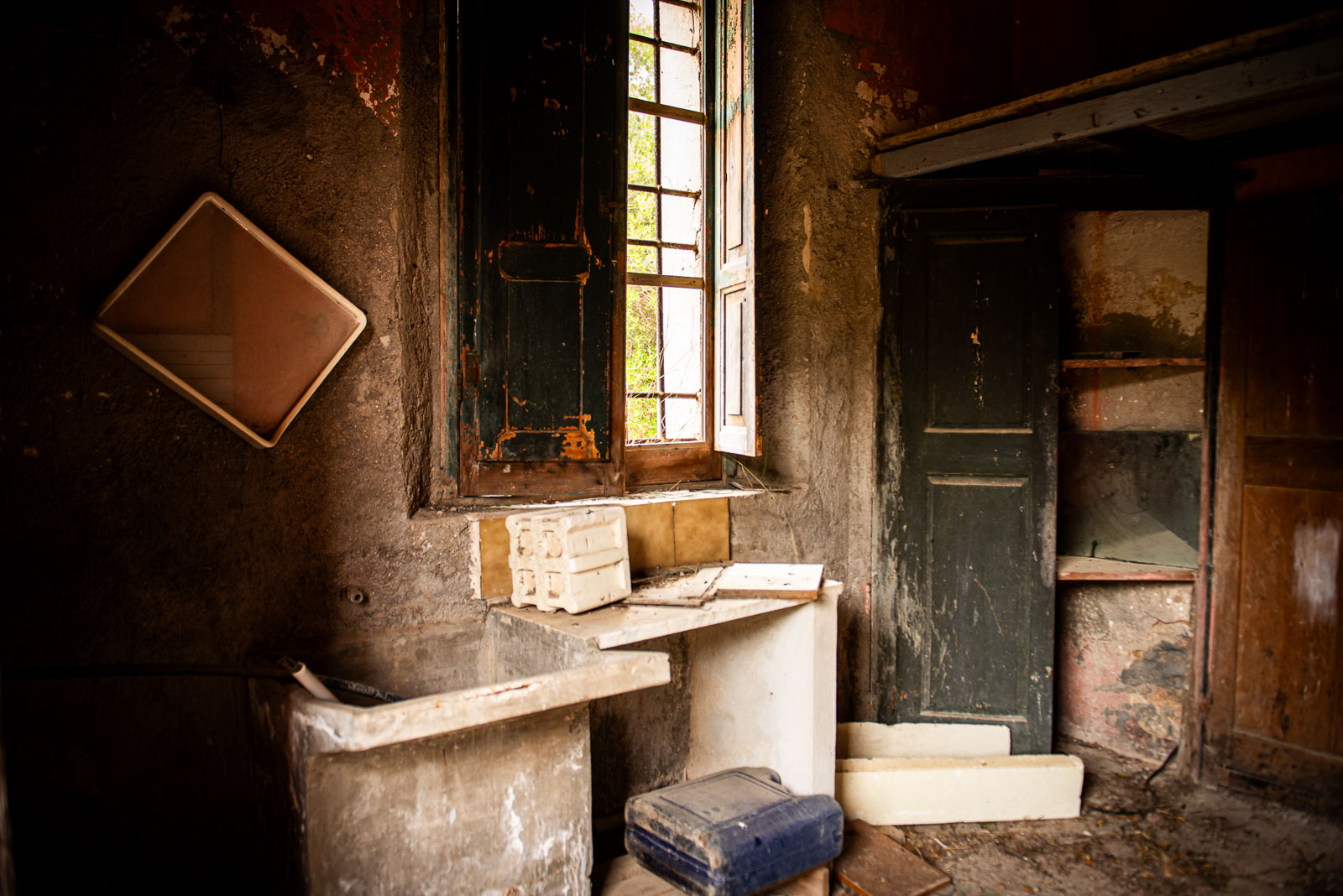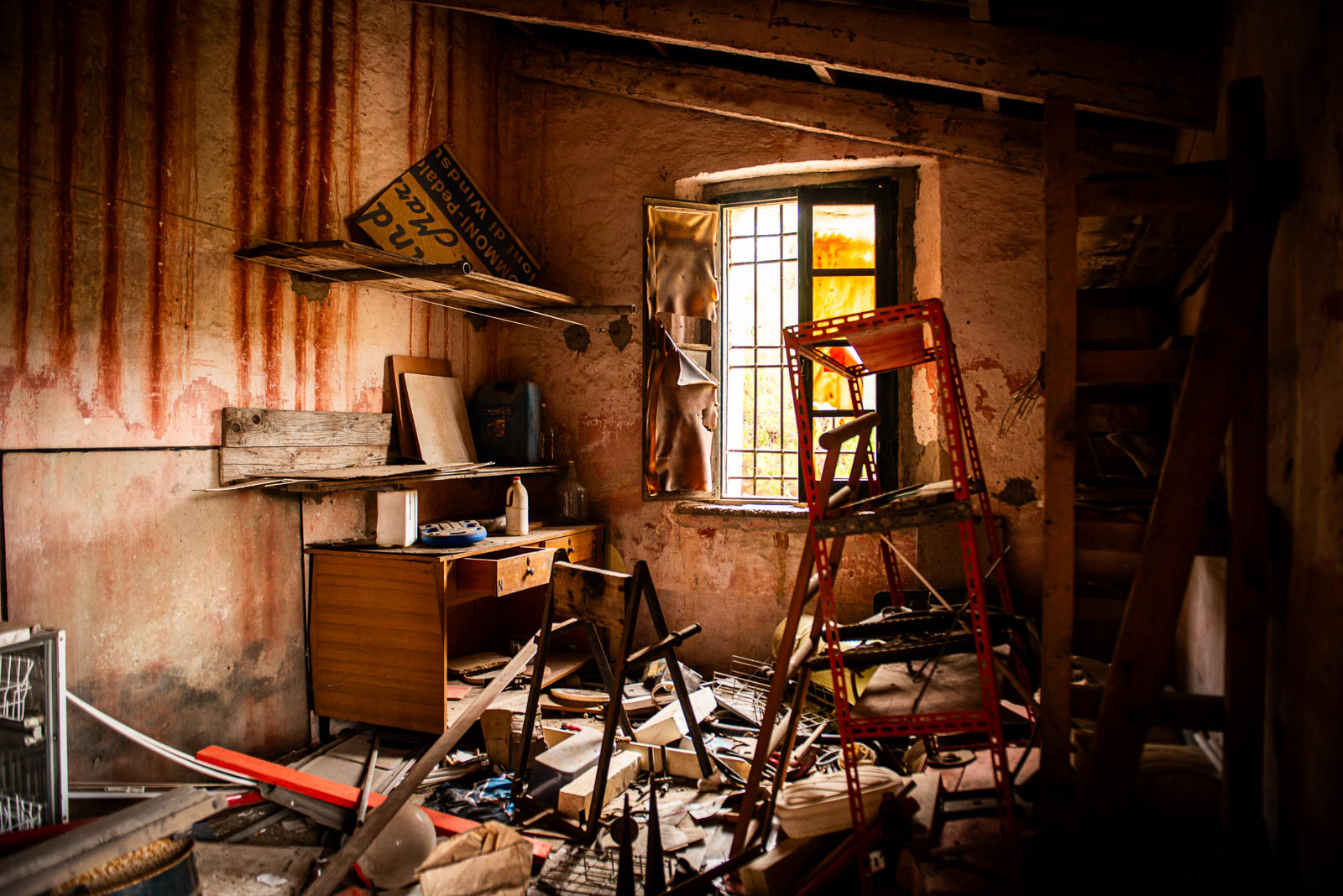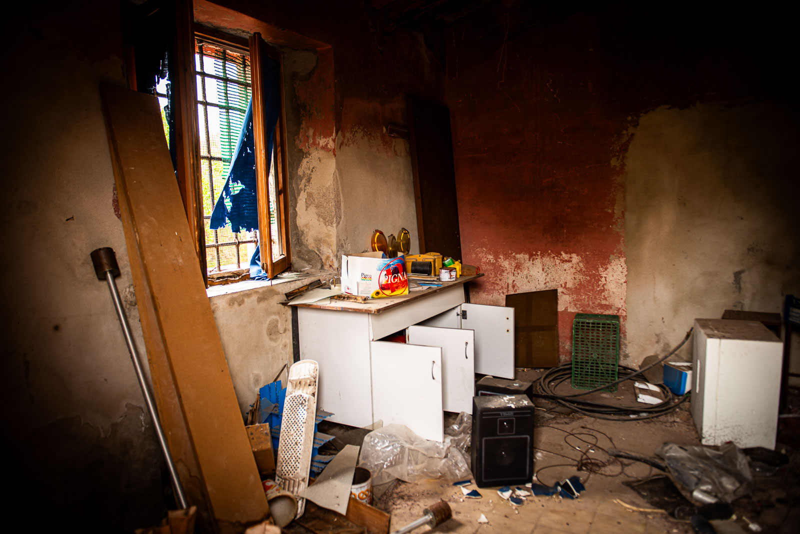 Comme indiqué dans une précédente série photo sur les casa cantonieras, ces maisons communales étaient des espaces de vie pour les ouvriers, de manière à dormir in situ lors de travaux de voirie. Pour la 1ere fois en trois ans, je pénètre une de ces maisons. Pour n’y trouver rien mais le plaisir d’y entrer. J’adore ces maisons caractéristiques de l’Italie, ce pigment minéral à base d’oxyde de fer proche de l’ocre rouge fortement présente dans les peintures murales de Pompéi.